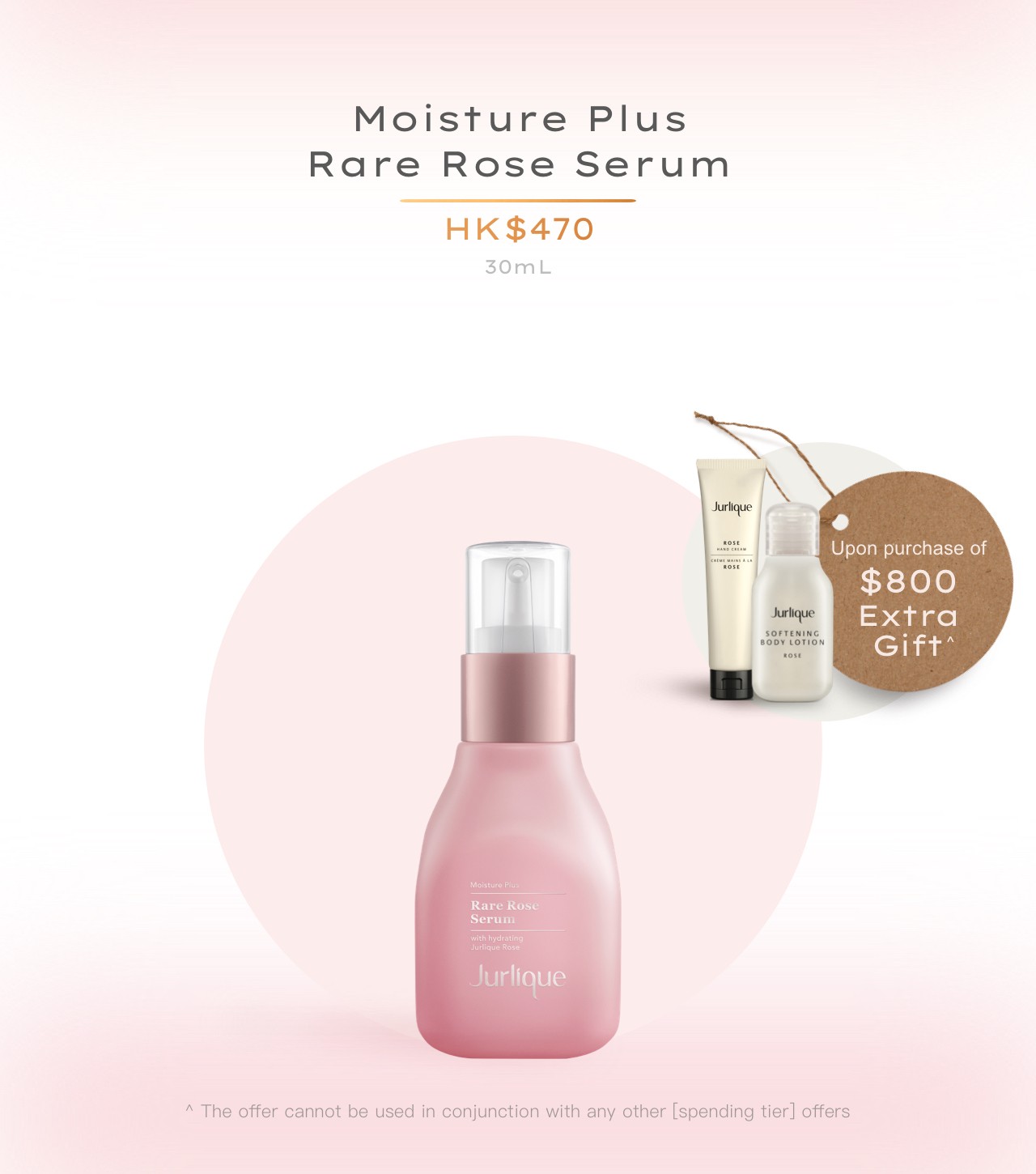 [Include]: Jurlique Moisture Plus Rare Rose Serum 30mL x 1. Upon purchase of HK$500, free shipping in Hong Kong and Macau.