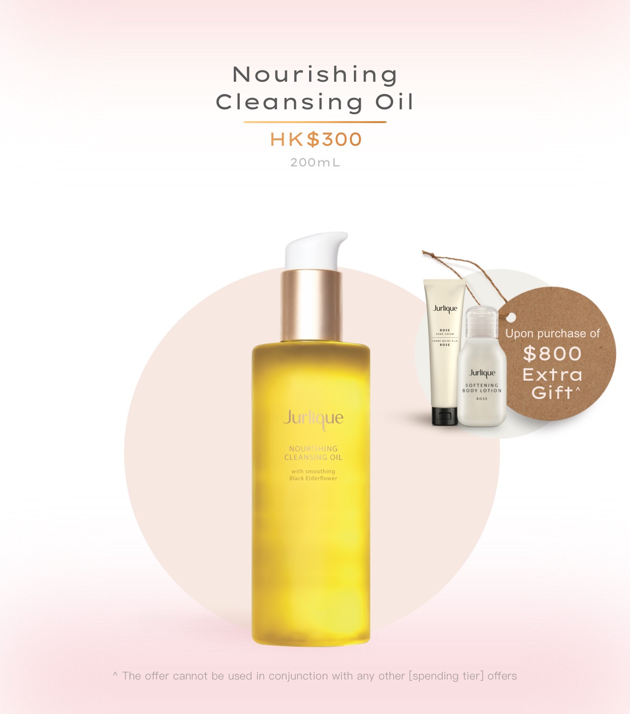 [Include]: Jurlique Nourishing Cleansing Oil 200mL x 1. Upon purchase of HK$500, free shipping in Hong Kong and Macau.